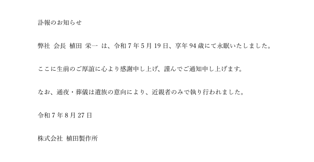商号 | 株式会社 植田製作所 [ UEDA SEISAKUSHO Co.,Ltd.] |